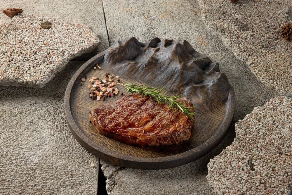 «Мастерская Древень» представила новое блюдо для подачи с 3D-рельефом горного массива. Блюдо изготовлено из массива дуба, пропитано пищевым цветным маслом. Практично для ресторанного и домашнего использования.