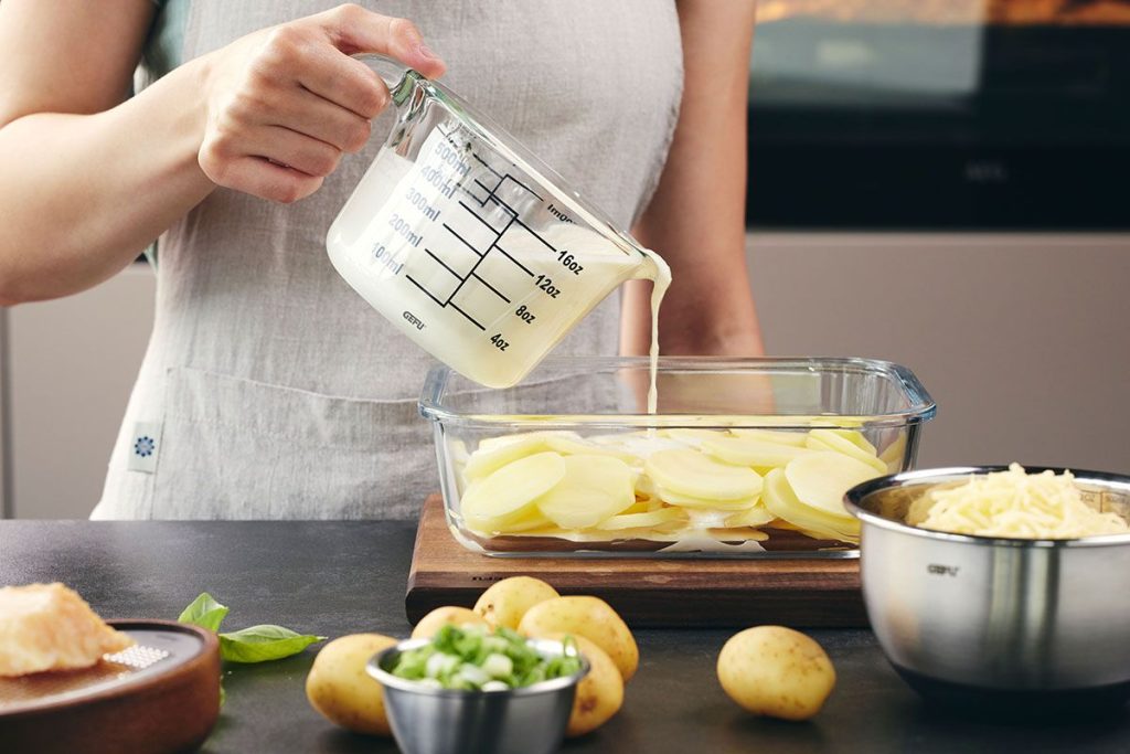 ТМ GEFU представила мерный кувшин объемом 500 мл. Кувшин изготовлен из термостойкого стекла, подходит для нагрева на водяной бане или в микроволновой печи (жаропрочность до 450 °C). Имеет удобный носик для наливания, мерная шкала располагается по обеим сторонам от ручки — удобно для использования левшам и правшам.