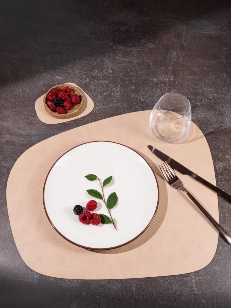 Компания «ШЕФ» пополнила ассортимент новой коллекцией салфеток от российского бренда Vero, который производит свои изделия в Италии и Испании. Салфетки выполнены с использованием переработанной натуральной кожи, отличаются нестандартными формами. В ассортименте представлены классические круглые и прямоугольные модели, а также трапеции и треугольники для тех, кто предпочитает необычные решения. Цветовая гамма включает теплый карамельный, серый, песочный и бежевый оттенки, которые хорошо сочетаются с современными интерьерами, добавляя глубину и премиальность.