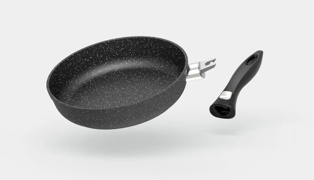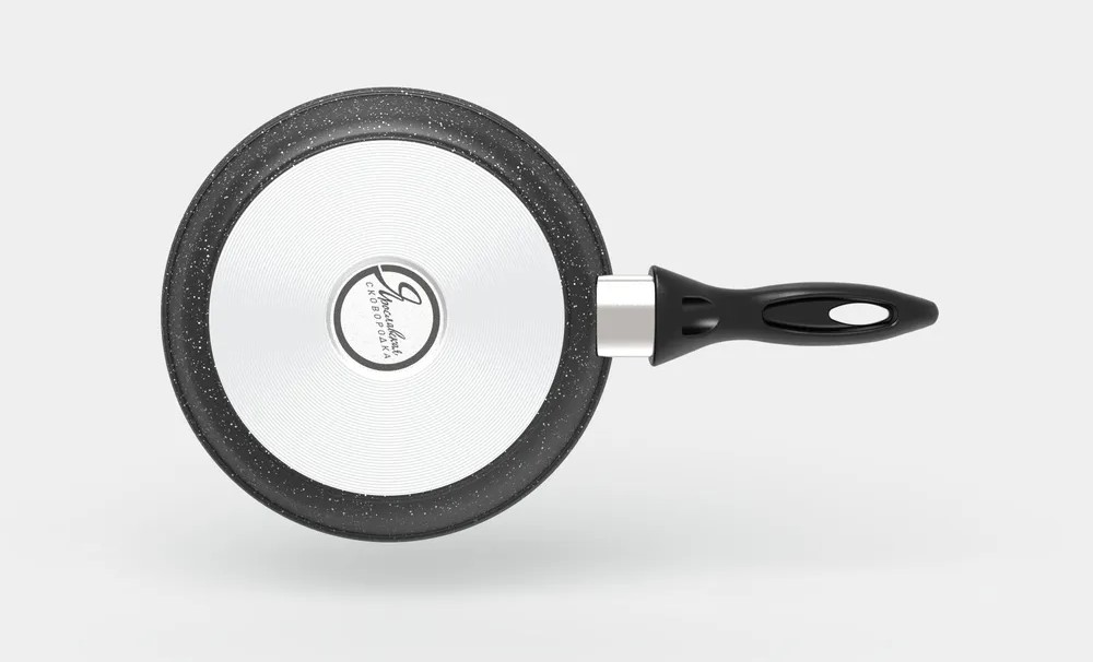 Компания «Ярославская сковородка» представила новую модель литой сковороды диаметром 20 см со съемной ручкой. Посуда имеет антипригарное покрытие Pfluon «мраморного» цвета с микрорельефной поверхностью на основе гранита. Утолщенное дно 6 мм обеспечивает равномерное распределение тепла и его длительное сохранение. Подходит для газовых, электрических и стеклокерамических плит (кроме индукционных).
