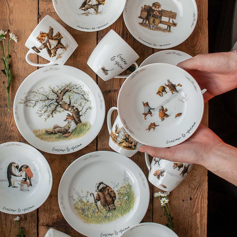 Интернет-магазин «Счастье в мелочах» пополнился новой коллекцией посуды из твердого фарфора «Счастье в простом». Изделия украшены детализированными рисунками в теплых тонах. Допускается использование в микроволновой печи и посудомоечной машине.