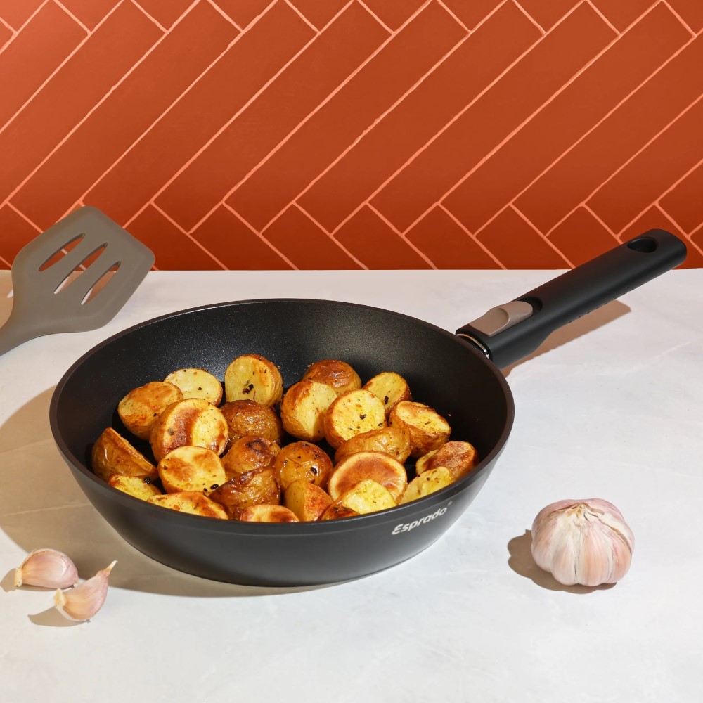 Компания Esprado представила новую линейку сковород Sense. Новинка выполнена из кованого алюминия с антипригарным покрытием Pfluon Cookmark, оснащена съемной бакелитовой ручкой. Посуда подходит для всех типов плит, включая индукционные, а также в духовке при температуре не более 230°C.