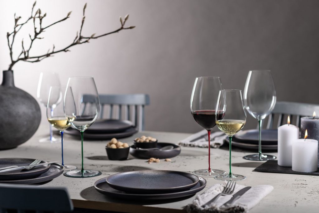 Марка Zwiesel Glas представила обновленную коллекцию Enoteca Colors, отмечающую 25-летие серии Enoteca. Новая линейка включает три формы бокалов — для шампанского, красного и белого вина — с цветными ножками в оттенках зеленого, вишневого и светло-голубого. Каждый бокал ручной работы, изготовлен методом выдувания в мануфактуре в Венгрии. Тонкие стенки обеспечивают безупречное раскрытие аромата и вкуса вина, а гармоничные пропорции гарантируют исключительный опыт дегустации.
