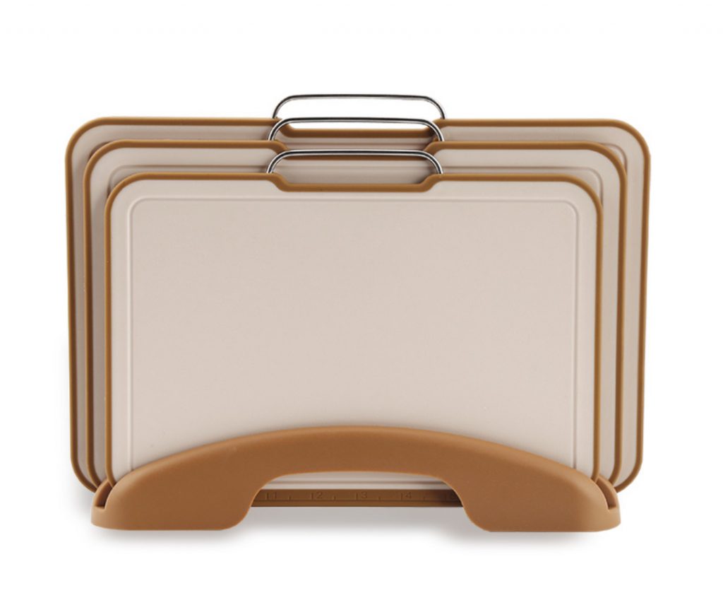Торговая марка «Маэстро» представила новинку: набор из 3-х разделочных досок на подставке. Доски выполнены из пластика, имеют ручки для навески, рабочую зону с двух сторон. Разный размер досок позволяет использовать их по разному назначению.