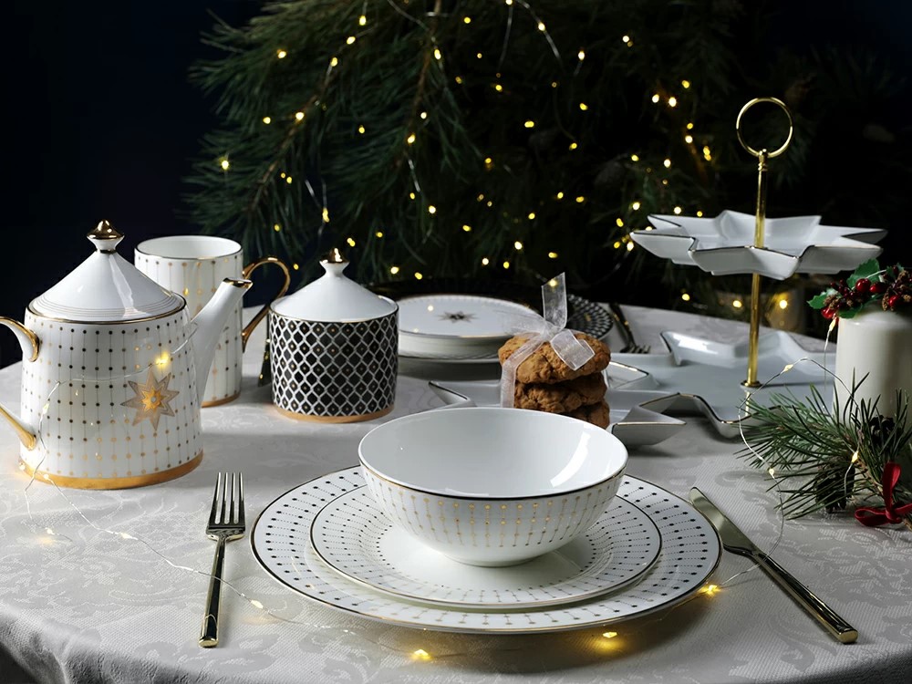 Императорский фарфоровый завод выпустил новую коллекцию «Азур золотой» от художника Юлии Гайлис (Чистяковой). В этом году серия пополнилась тремя новинками, которые помогут создать праздничную сервировку: элегантный бокал для согревающих моментов, вместительный салатник, обеденные тарелки. Сдержанный и изысканный декор «Азур Золотой» позволяет комбинировать предметы как самостоятельно, так и с другими коллекциями автора «Азур», «Скарлетт», «Индиго», «Неро», «Астра», «Лайм», «Примула» и «Календа».