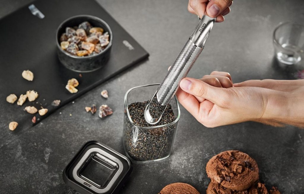 Торговая марка GEFU представила ситечко для чая T-STICK из нержавеющей стали для заваривания листового чая в кружке или стакане. Корпус имеет мелкую перфорацию по всей длине для равномерной фильтрации без чаинок в напитке. Форма палочки и выдвижная конструкция упрощают наполнение и размещение ситечка в чашке. Модель подходит для заваривания чая, трав и специй и рассчитана на мытье в посудомоечной машине. Изделие относится к линейке с фирменной 5-летней гарантией GEFU.
