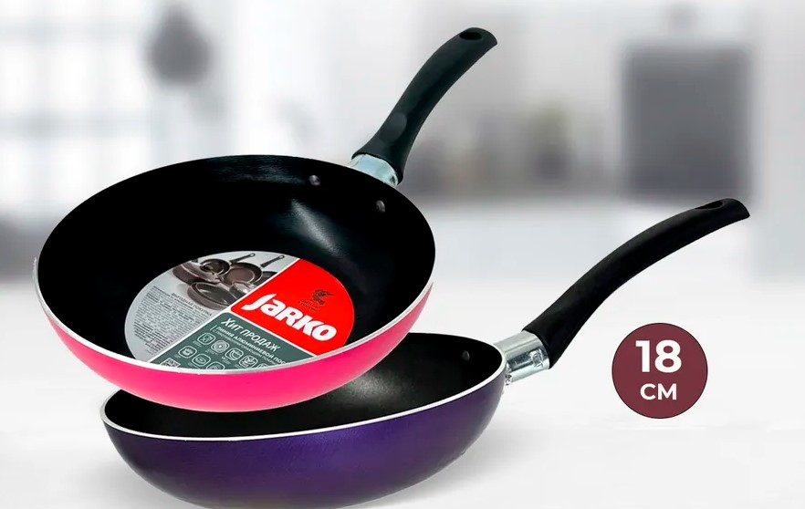 ТМ Jarko пополнила ассортимент сковород моделями диаметром 18 см. Изделия выполнены из штампованного алюминия, оснащены антипригарным покрытием. Представлены в оттенках лайм, васильковый, фуксия, ультрафиолет.