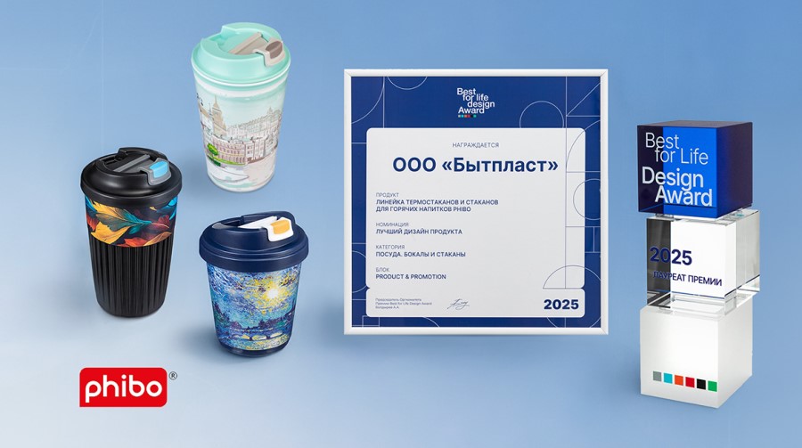 Компания Бытпласт получила награду VIII премии Best for Life Design Award в категории лучший дизайн продукта. Жюри отметило термостаканы и стаканы Phibo за сочетание функциональности и экологичного подхода.