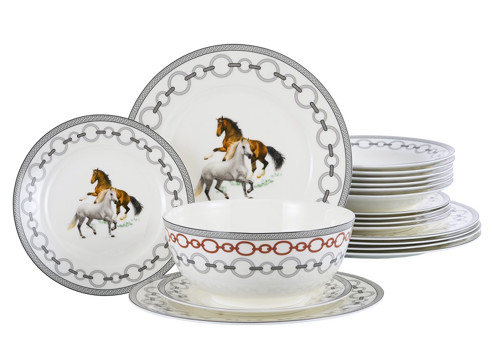 Торговая марка Gipfel пополнила ассортимент фарфора коллекцией посуды с символом года. Сервиз Aragon включает 19 предметов, выполненных из костяного фарфора. Рисунок нанесён методом деколи, что обеспечивает высокую стойкость к царапинам, истиранию, в том числе при мытье в посудомоечной машине. В составе линейки также представлена чайная посуда и прямоугольные сервировочные блюда.