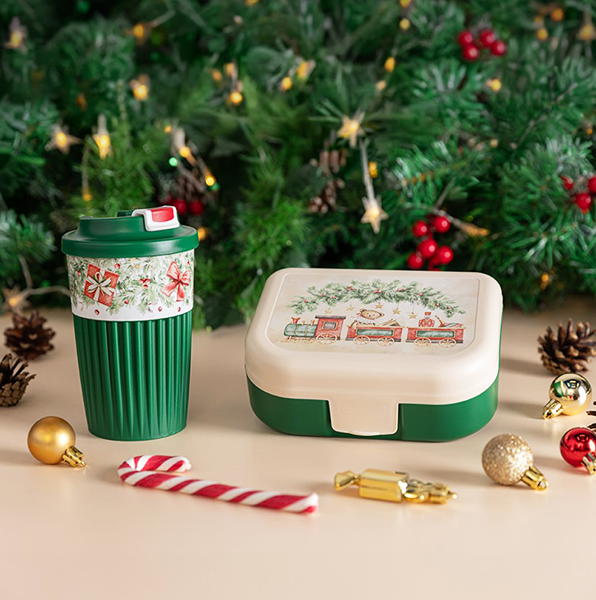 Компания «Бытпласт» представила новогодние термостаканы, ланч-боксы и контейнеры Phibo с тематическим декором. В ассортименте коллекция в зеленых и красных оттенках с традиционными праздничными мотивами и коллекция в бежевом исполнении с изображением символа 2026 года. Декоры нанесены с помощью технологии вплавления этикетки (IML).