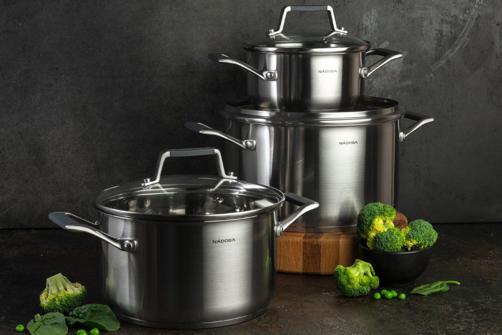 Торговая марка NADOBA представила коллекцию посуды Odri, выполненную из высококачественной нержавеющей стали 18/10. Трехслойное капсульное дно обеспечивает быстрый и равномерный нагрев. Толщина стенок корпуса 0,6 мм. Благодаря термостойкому силикону на ручках изделие можно использовать в духовом шкафу. Изделия оснащены стеклянными крышками.