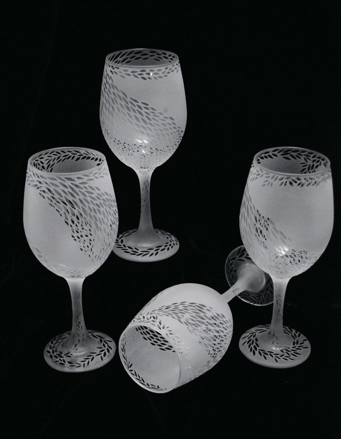 Метод объединил точность фоторезистивной маскировки с мощью пескоструйной обработки, позволив создавать рельефные, объемные и крайне детализированные изображения на стеклянных поверхностях – от бокалов до интерьерных элементов.