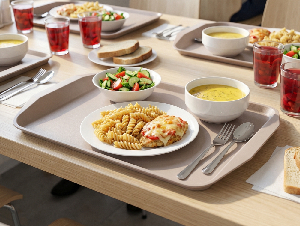 Компания «Мартика» представила новинку — пластиковый поднос для заведений общественного питания. Модель размером 35х47 см выдерживает интенсивную ежедневную эксплуатацию, имеет усиленные стенки и удобные для переноски ручки. Поверхность матовая, не скользящая.