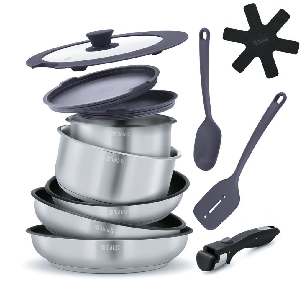 Эргономика и лаконичный дизайн давно стали главными трендами в обустройстве кухни. Бренд TalleR воплотил эти принципы в новом наборе посуды TR-17102. Его главная «фишка» – универсальная съемная ручка, которая подходит к каждому предмету комплекта. Это не просто дань моде, а радикальное решение проблемы хранения – предметы максимально компактно складываются друг в друга и занимают минимум места в ваших шкафах.
