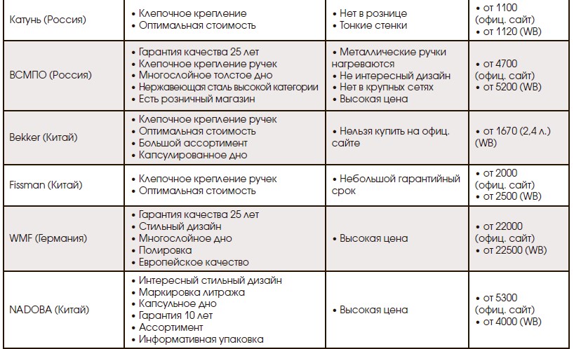 Конечно, не все производители и марки указаны в таблице. Ассортимент очень большой и в рознице, и на маркетплейсах. Коллекций много, особенно тех, что произведены в Поднебесной. Но хочется заметить, что отечественные производители по соотношению цены/качества выигрывают.