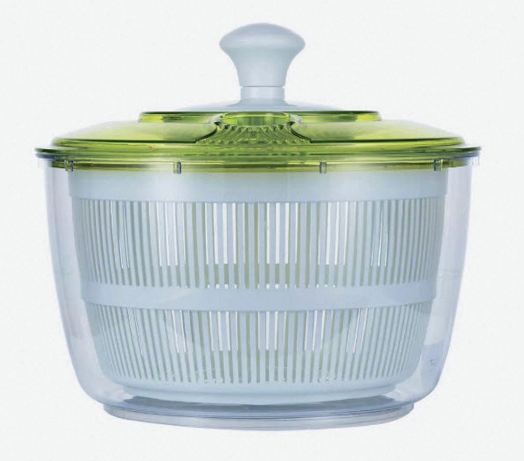 Устранить оставшиеся капли на вымытой зелени или ягодах поможет ручная центрифуга из АВС-пластика от Gipfel – Cerea. Это незаменимый помощник при создании салатов или фруктовых миксов. Достаточно поместить в нее вымытую зелень (ягоды и пр.), повернуть несколько раз ручку и влага отлетит под действием центробежных сил. Теперь ингредиенты можно смешивать и заправлять любимым соусом, который равномерно распределится, а не стечет на дно посуды, как это бывает при контакте с мокрыми поверхностями.