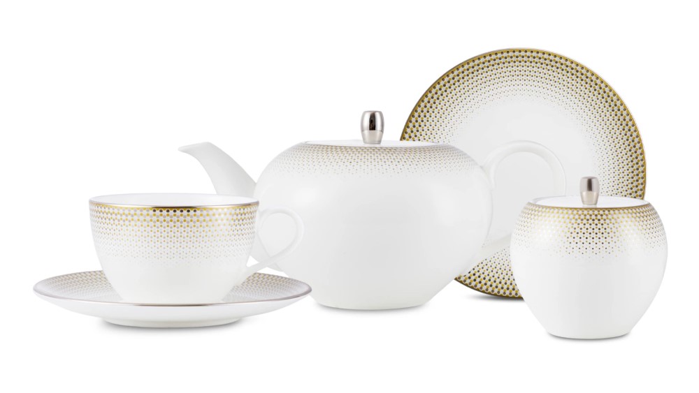 В сети магазинов «Дом фарфора» представлена новинка японского бренда Narumi — коллекция посуды из костяного фарфора «Сверкание топаза». Дизайн вдохновлен ювелирным искусством: мерцающий узор, напоминающий россыпь драгоценных камней, украшает кромку тарелок и чашек. Геометрический «бриллиантовый» паттерн подчеркивает плавные формы фарфора, создавая эффект изысканного сияния.
