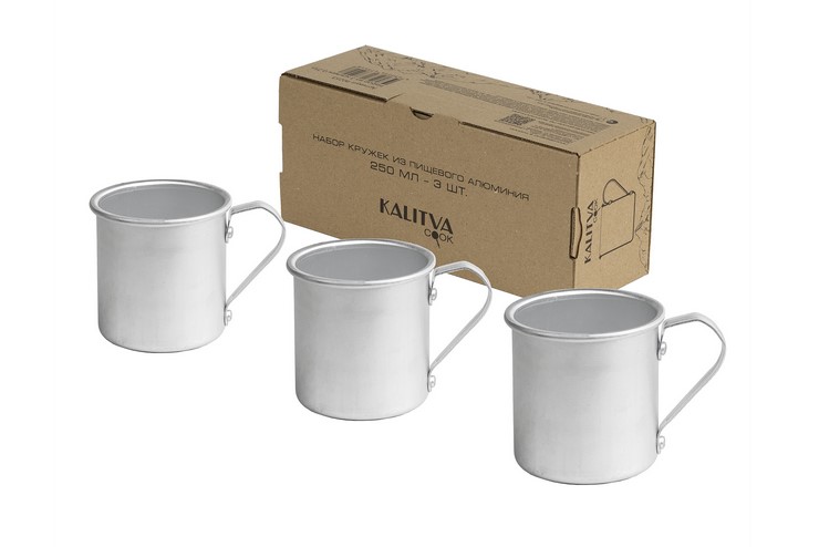 Торговая марка Kalitva расширяет ассортимент туристической посуды. В продаже появился набор из трёх кружек, которые отлично подойдут для походных условия, поездок и пикников на даче. Изготовленные из качественного пищевого алюминия, они отличаются легкостью, прочностью и удобством в уходе. Объем каждой кружки — 250 мл.