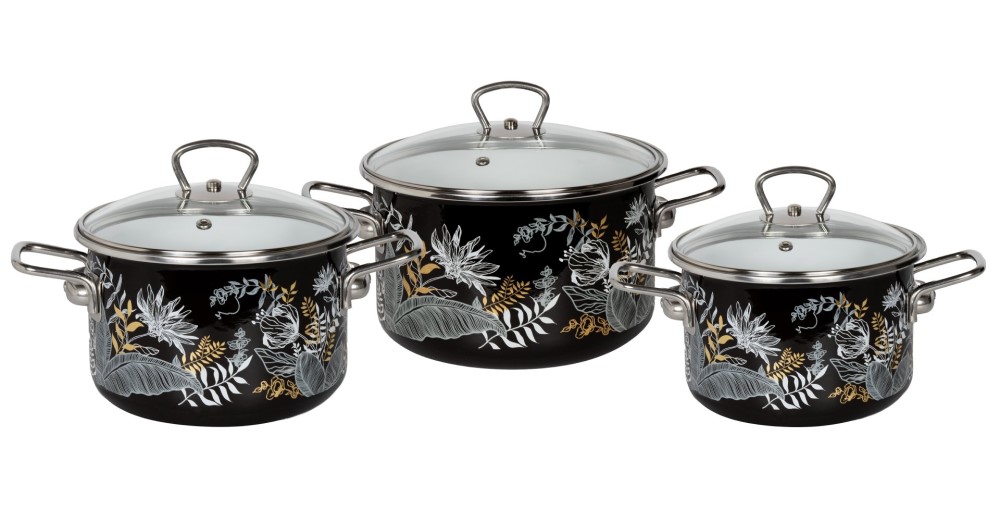 Компания «СтальЭмаль» выпустила новый набор стальных эмалированных кастрюль цилиндрической формы VITROSS Magia. Кастрюли комплектуются крышками из жаропрочного стекла с пароотводом, эргономичными ручками из коррозионно-стойкой стали, борта защищены нержавеющим ободком. Посуда изготовлена по ГОСТ 24788 из высококачественного стального проката, покрытого двумя слоями жаропрочной эмали.