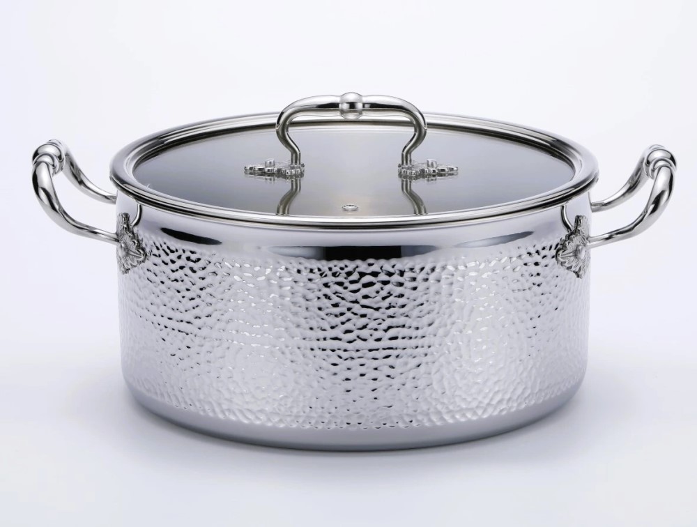 Торговая марка Lenardi представила серию посуды для приготовления Emboss. Посуда изготовлена из нержавеющей стали с утолщенными стенками (2,5 мм), оснащена трехслойным капсульным дном, плоскими стеклянными крышками. Корпус декорирован тонкой чеканкой ручной работы. Ручки с кованными декоративными элементами крепятся на заклёпки. Изделия упакованы в подарочную коробку.