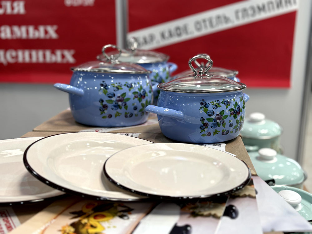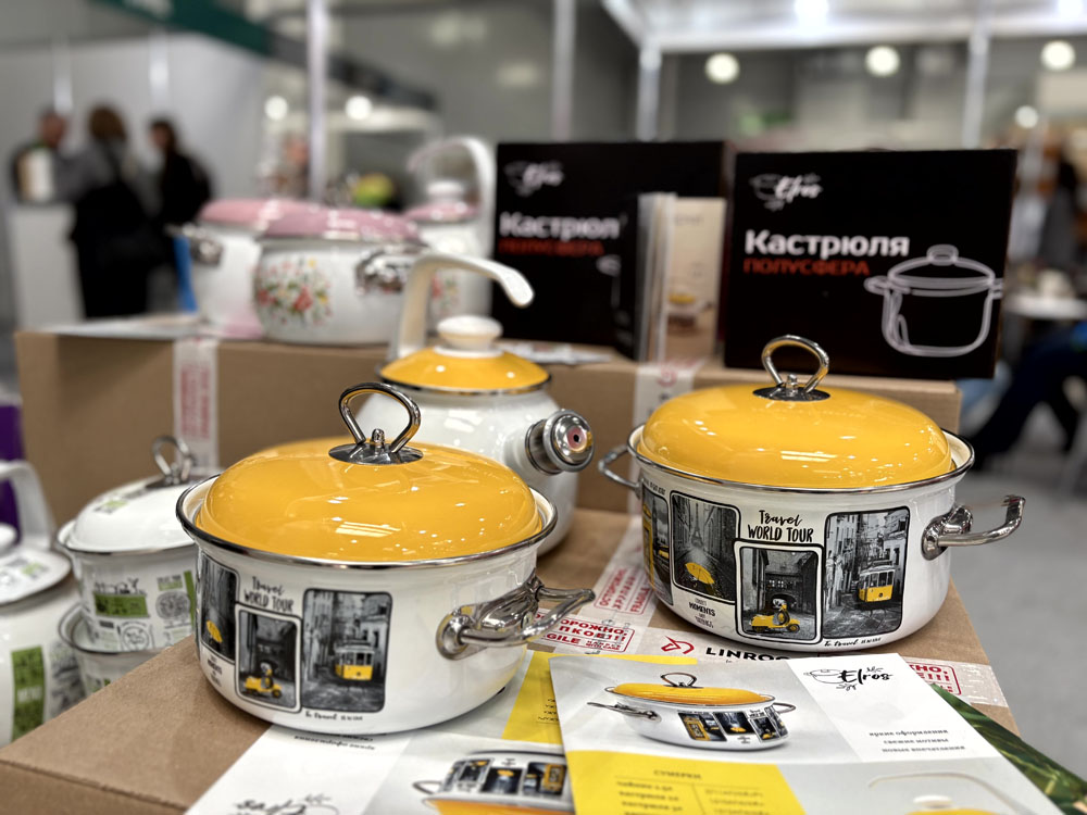 На весенней выставке HouseHold Expo 2026 промышленная группа «Линрог» представила новые коллекции посуды Лысьвенского завода эмалированной посуды. Среди новинок — стильные кастрюли с ярким рисунком ТМ Elros. Посуда изготовлена из прочной стали с многослойным износостойким эмалевым покрытием, устойчивым к воздействию кислот и абразивов.