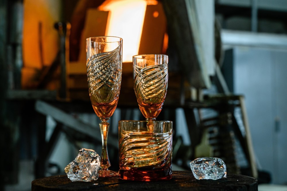 Бренд «Хохлома» и Гусевской Хрустальный завод им. Мальцова представили коллекцию «Хрустальная кудрина». Лимитированная коллекция хрустальных бокалов объединила в себе традиции двух русских промыслов с многовековой историей. Каждое изделие выполнено вручную методом выдувания в форму — это кропотливый и долгий процесс, который требует исключительного мастерства. Источником вдохновения для алмазной грани послужила кудри́на — растительный орнамент из хохломской росписи. Теплый янтарный оттенок отсылает к золоту хохломского промысла и его уникальной технологии золочения без использования драгоценных металлов.