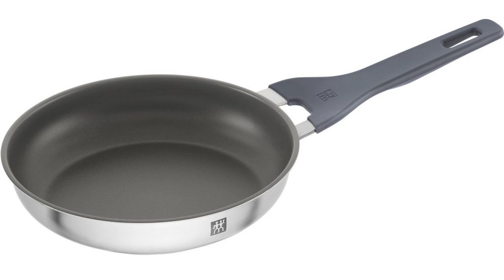 Торговая марка Zwilling дополнила серию посуды из нержавеющей стали Simplify сковородами с керамическим антипригарным покрытием. Сковороды доступны в трех размерах: 20, 24 и 28 см. Изделия оснащены ручкой с силиконовым покрытием. Посуда подходит всех видов плит и духовки (до 180°C).