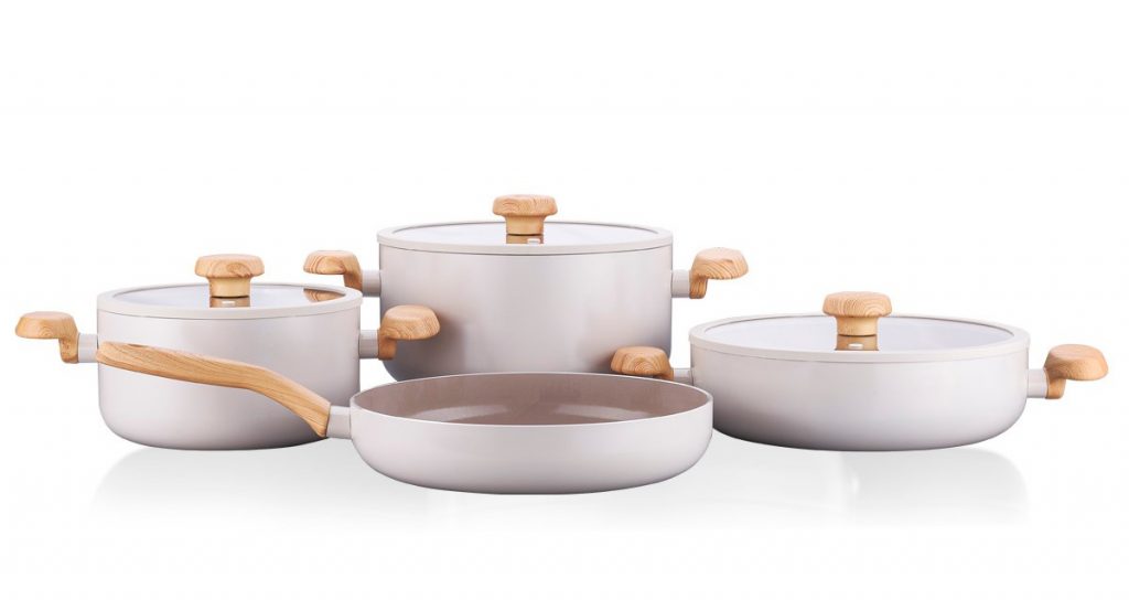 Турецкий производитель посуды Korkmaz расширил ассортимент посуды серией Mia Sera. Серия изготовлена из кованого алюминия с «керамическим» покрытием в двух вариантах цветов — мятный и ваниль. Дно посуды адаптировано для всех типов плит, включая индукционные. Посуда оснащена термостойкими ручками из бакелита.