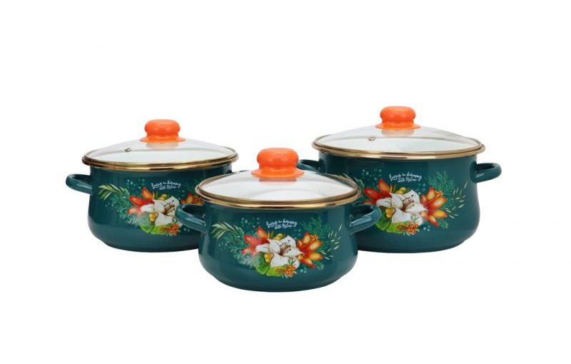 Компания «Эмаль» выпустила новый набор эмалированной посуды с деколью «Дафния». Изделия