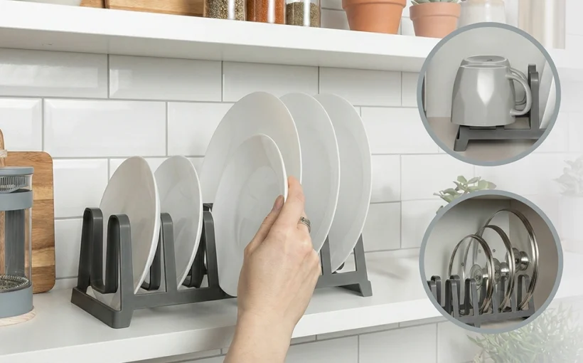 Компания «Бытпласт» выпустила новый универсальный органайзер для хранения посуды на кухне.