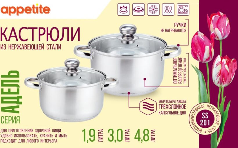 В ассортименте компании «Пилот МС» появились кастрюли серии «Адель». Изделия выполнены